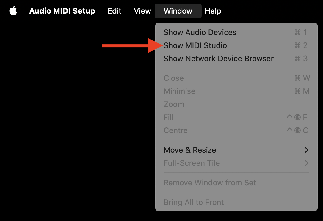 - In the top menu bar, go to Window > Show MIDI Studio.