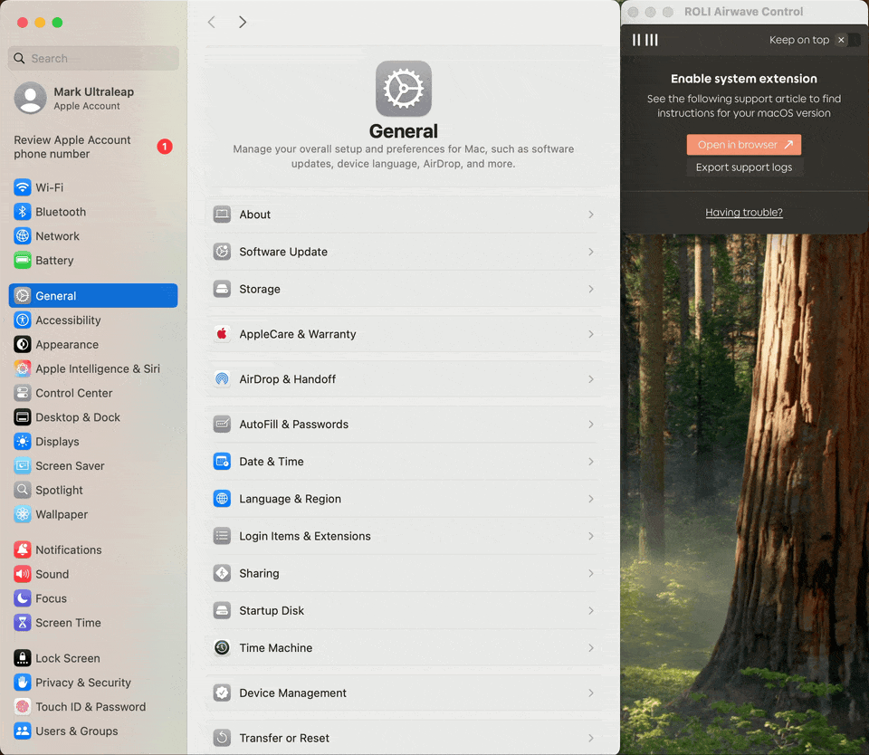 The first time you open ROLI Airwave Control you will be prompted to enable the macOS system extension required to use Airwave